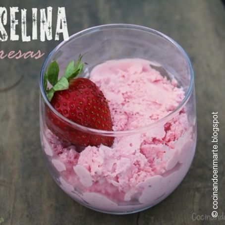 Montamos la nata y añadimos las fresas a la mezcla, junto con las cucharadas de azúcar invertido.