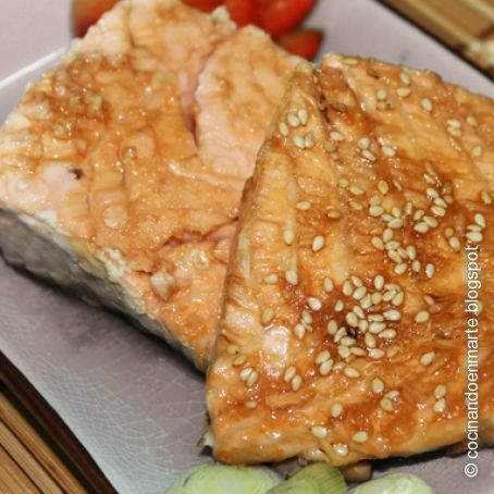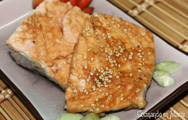 El salmón tiene un sabor muy agradable y se haga de la manera que sea queda muy bueno. Esta receta es sencillísima y tiene un aire oriental muy atractivo que se puede reforzar con un poco de cebollino picado o cilantro que le daría un toque muy fresco.