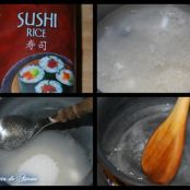 3º mientras haremos una salsa que se llama sushizu, que se deberá añadir al arroz, en un cazo echaríamos el vinagre de arroz, azúcar y sal y lo llevaríamos al fuego hasta que se deshagan el azúcar y el arroz y apartaríamos del fuego