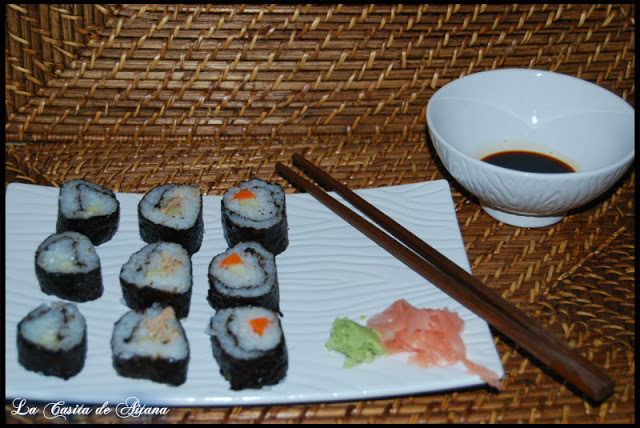 9º ya solo quedara cortar nuestro maki y servir en un plato con wasabi, jenjibre y salsa de soja y listos nuestros makis super ricos