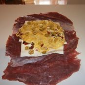 Abrimos la carne, la salpimentamos y colocamos sobre ella el queso cortado en lonchas.