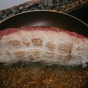Doramos el rollo de carne en una sartén, con aceite de oliva muy caliente .