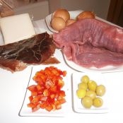 Hoy vamos a preparar una receta de carne, un rollo relleno de queso y cecina. Hace tiempo preparamos uno con bacon y queso, el proceso es muy parecido. Es un plato sin mucha dificultad y que admite muchos rellenos. Esta vez le daremos un toque con aceitunas para darle un toque vistoso.