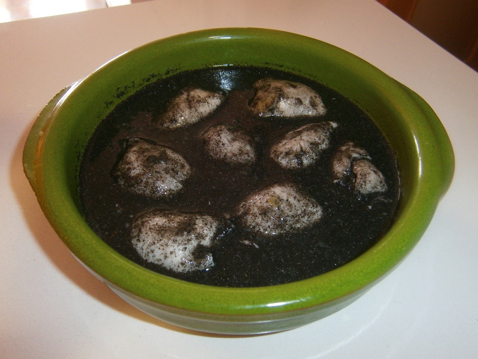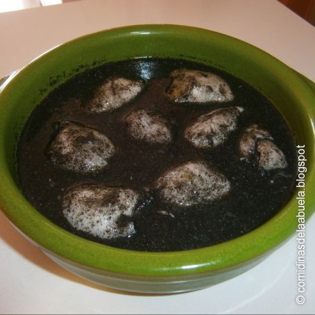 Mezclamos la tinta de los chipirones con el vino blanco y lo añadimos a la cazuela. Cocemos durante media hora. Después lo pasamos por la batidora hasta obtener la salsa cremosa y sin grumos.