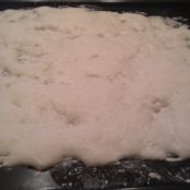 Nosotros le dimos forma más o menos quadrada y la dejamos reposar en la bandeja del horno.