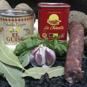 Ahora añadimos los 4 ajos bien picados (o aplastados sólo, esto va a gusto del consumidor), todo el perejil picado muy fino, la hoja de laurel y un par de cucharadas de pimentón ahumado.
