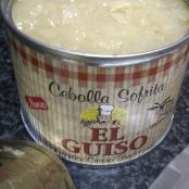 Calentamos en una olla un chorro de aceite de oliva y añadir la cebolla sofrita. En este caso, como la que la cebolla ya estaba bien cocida, no será necesario que esperamos a caramelizar la misma.
