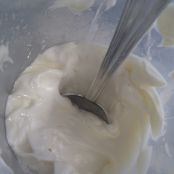 Por otra lado, cogemos un huevo y una generosa cantidad de aceite y batimos con el turmix hasta conseguir una salsa homogénea, la mayonesa.