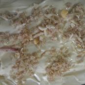 Disponemos a rellenar los canelones y los ponemos en una bandeja con la mayonesa a la cima.