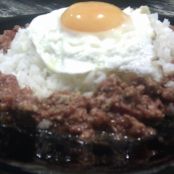 En otra sartén, vamos friendo los huevos, dejando la yema cruda para que posteriormente se esparza por el plato de arroz :) Queda muy bueno todo mezclado, el huevo, la carne y el arroz, ñame.