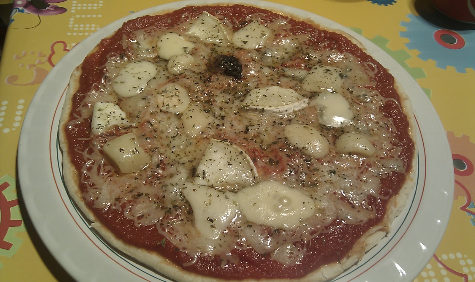 Una vez tenemos el tomate frito lo esparcimos encima de la pizza, despúes le añadimos los diferentes quesos y le echamos un toque de óregano.
