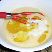Una vez batido bien incorpòraremos el aceite y el yogur, mezclamos bien otra vez.