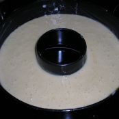 En el molde ya preparado con la mantequilla pondremos la masa del bizcocho.