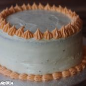Para la cobertura, utilicé el mismo ganache, solo que un poquito lo teñí de naranja, lo cubrí, alisando lo que pude, porque anda que no es difícil alisar y más con prisas y calor!! y fui haciendo la decoración con la manga pastelera, con mucha prisa, porque hacia mucho calor y se deshacía como apreciareis en las fotos.