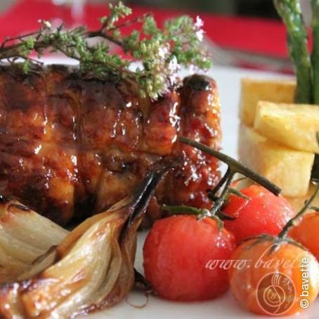 Pollo caramelizado relleno de jamón dulce.. Descubre nuestra receta.