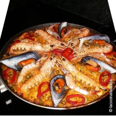 Una paella, que le podéis poner el marisco que mas os guste, yo es una de las que mas hago en casa, junto con la paella mixta, os va a encantar.