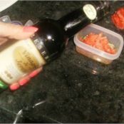 Salamos un poco, le añadimos 2 cucharadas de aceite y una de vinagre de Jerez, esta vinagreta la podemos hacer el día antes, así maceara y esta mas rica