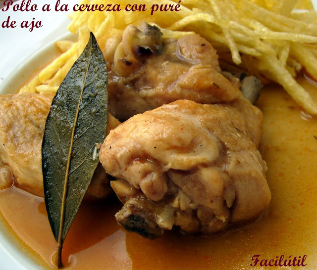 Esta receta la llevo haciendo en casa desde hace mucho y es una de las que mas nos gustan. Es un pollo a la cerveza un poco especial, aunque os suene raro eso del puré de ajos en la preparación veréis que es.