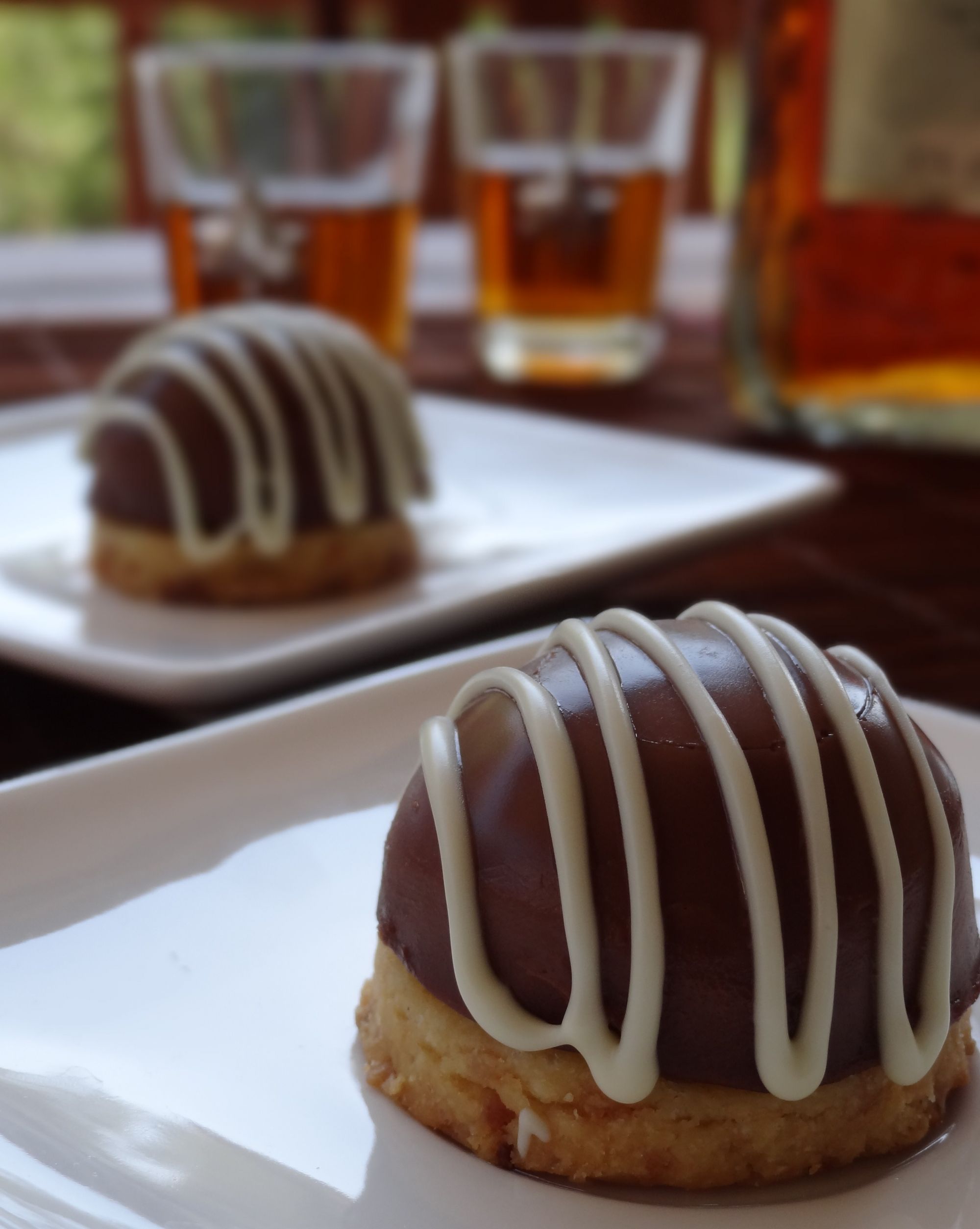 Calentar la nata (sin llegar a hervir) y mezclar con el chocolate hasta que se derrita bien, incorporar la mantequilla y el Baileys.
