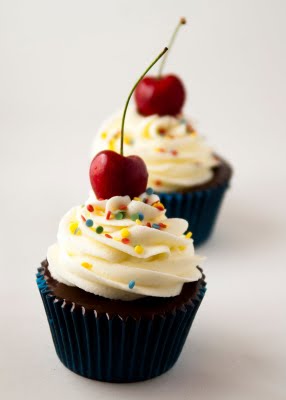 Mientras se enfría por completo el chocolate que hemos puesto sobre los cupcakes, preparamos el buttercream, batiendo (durante unos 3 minutos), 125g de mantequilla a temperatura ambiente con 250g de icing sugar previamente tamizado, 1/2 cucharadita de extracto de vainilla y 3 cucharaditas de leche semidesnatada.