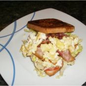 Ponemos en cima del beicon el revuelto de huevo y tapamos.
