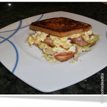 - Cubre con otro pan, úntalo con mayonesa, añade jamón y queso.