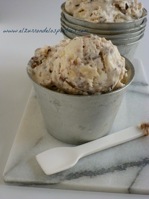 Esta operación la repetiremos dos o tres veces. Siendo en la última cuando añadimos los trocitos de cada chocolate, revolvemos y llevamos de nuevo al congelador.