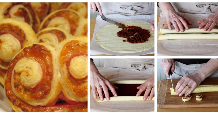 Enrollamos el hojaldre por cada lado alargado hasta llegar a la mitad. Nos debe quedar forma de palmera típica.