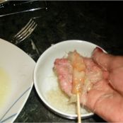 Les pasamos por clara de huevo sin batir y por los fideos apretando un poco para que los trozos de fideos se peguen al langostino.