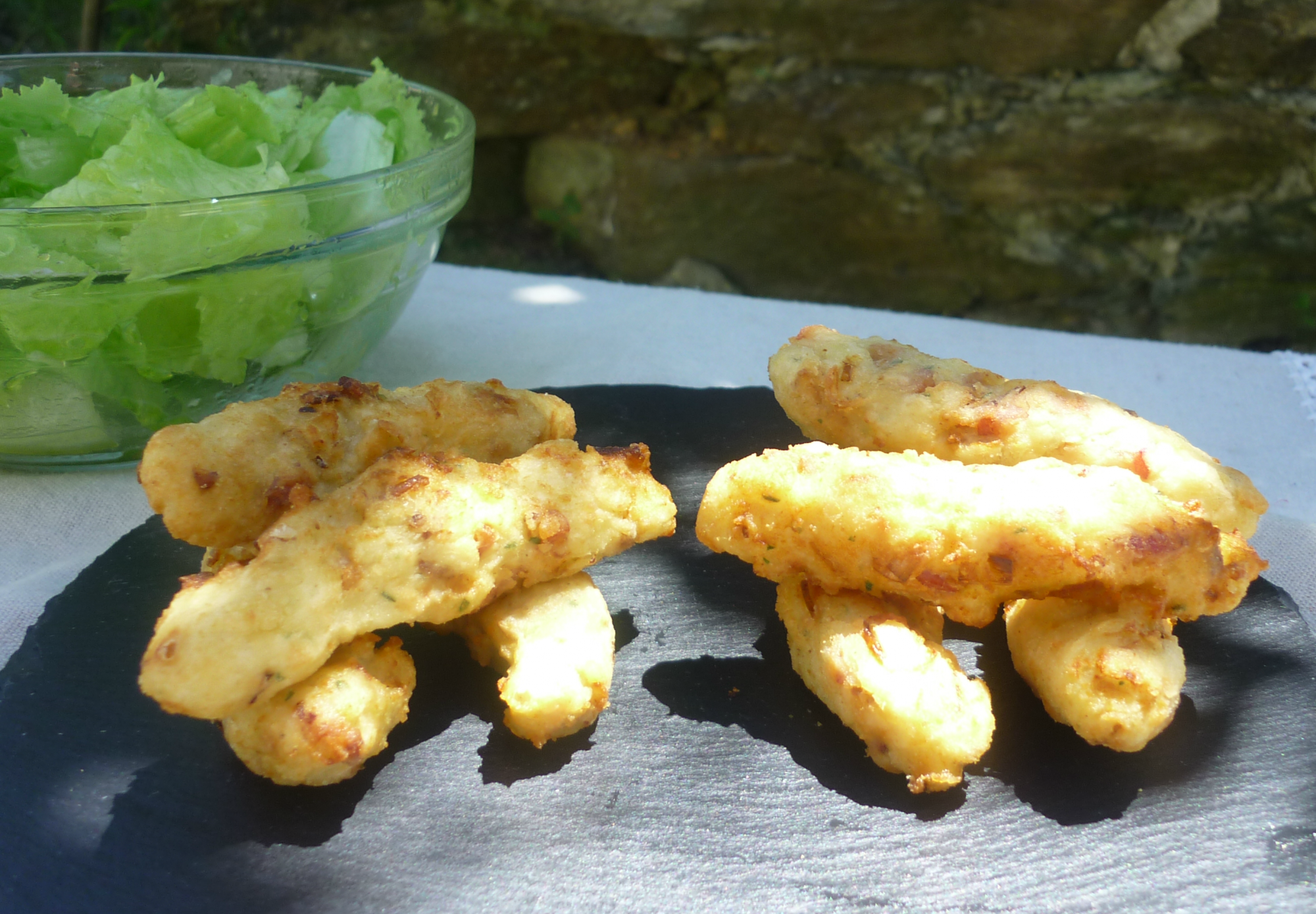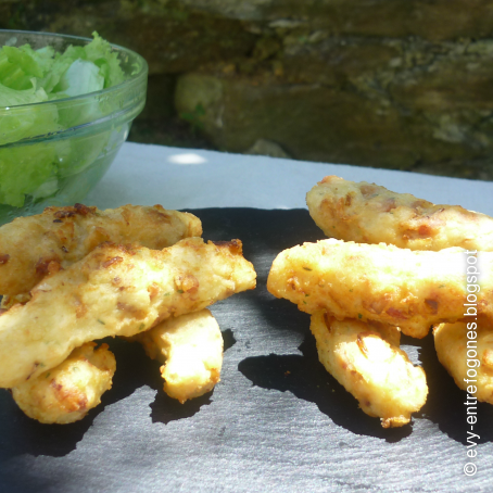 Hacemos puré las patatas, añadimos el bacon y el puerro y mezclamos bien. Incorporamos el huevo y volvemos a mezclar. Con las manos enharinadas vamos cogiendo porciones de mezcla y dándole forma de palito. Los pasamos por harina y los freímos. Dejamos escurrir la grasa y servimos.