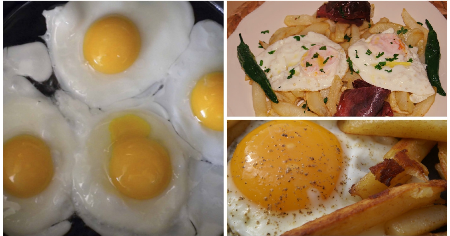 5° freímos los huevos y colocamos en un plato y por ultimo cogemos 2 lonchas de cecina y lo pasamos por el aceite ya utilizado, vuelta y vuelta y apartar en otro plato.