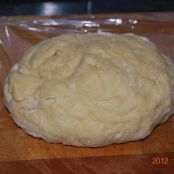 3°CON LA AYUDA DE UNA PALA IR MOVIENDO TODO Y VOLCAR CONTENIDO DEL BOL EN UNA BASE PARA IR AMASANDO LA MASA HASTA CONSEGUIR UNA BOLA DE MASA QUE NO SEA PEGAJOSA SI NECESITÁIS AÑADIR MAS HARINA LE ECHÁIS MAS