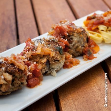 Receta Italiana de berenjenas llamada Polpette di Melanzane. Está basada en los chefs Antonio Carluccio y Gennaro Contaldo. Es empezar y no parar.