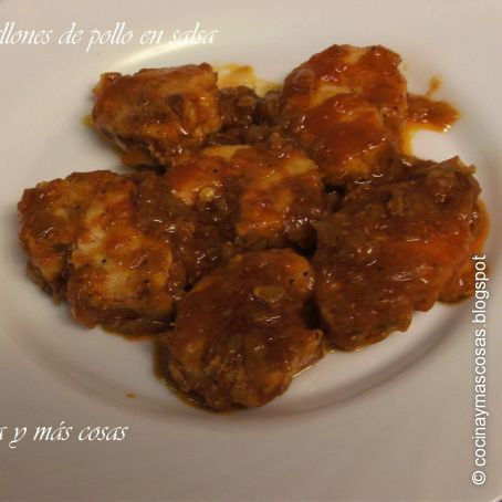 Se corta la pechuga a rodajas, se salpimientan y se fríen en una cazuela. Cuando estén doradas se le agrega el puerro picado bien fino y cuando esté casi transparente se le agregan las hierbas, el tomate frito y el coñac, dejar hacer unos tres o cinco minutos y listo.