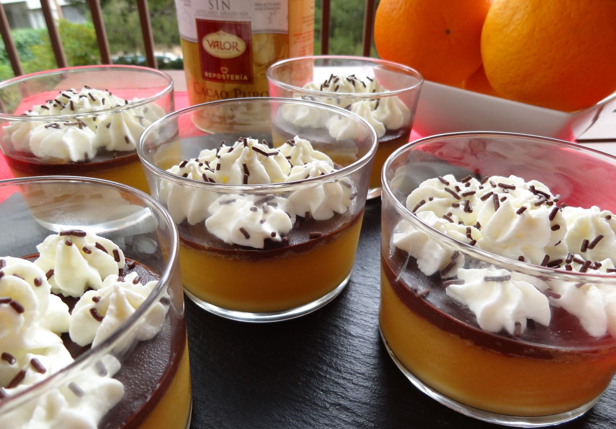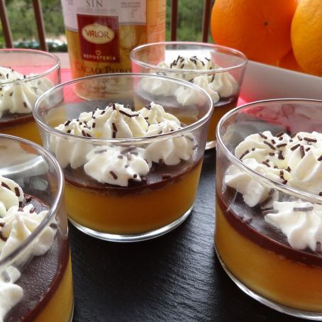 Vasitos de naranja, chocolate y nata