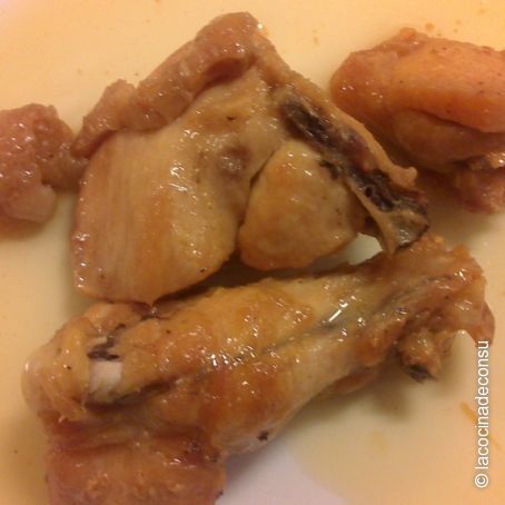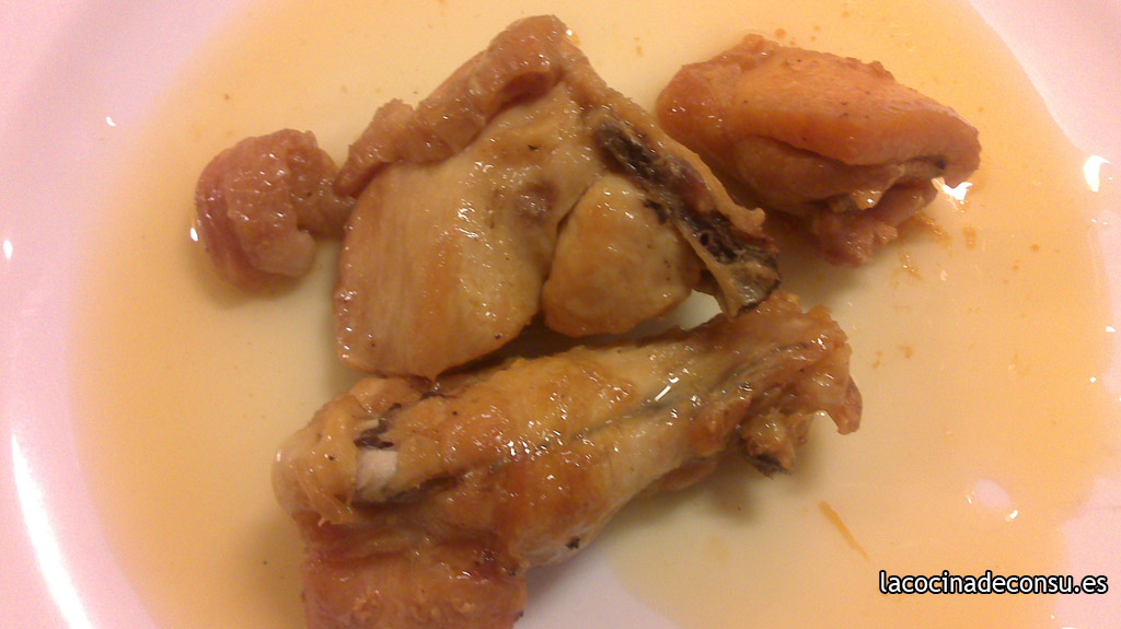 Sazonamos el pollo y lo freimos en el aceite en que hemos frito los ajos.