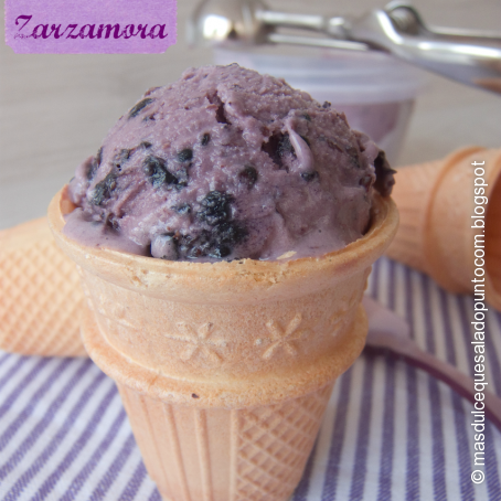 Helado cremoso de moras que se puede hacer con o sin heladera