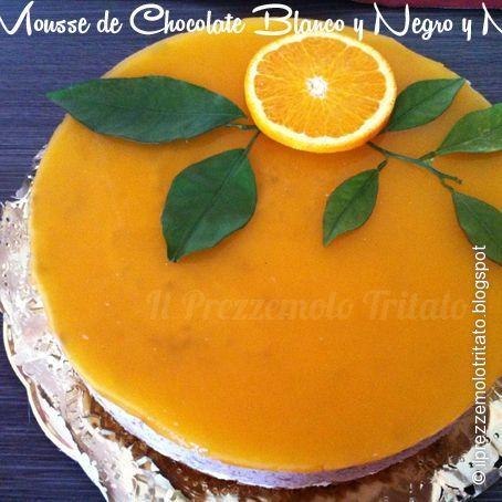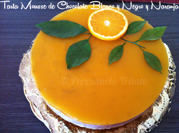 Tarta mousse de chocolates blanco y negro y gelatina de naranja