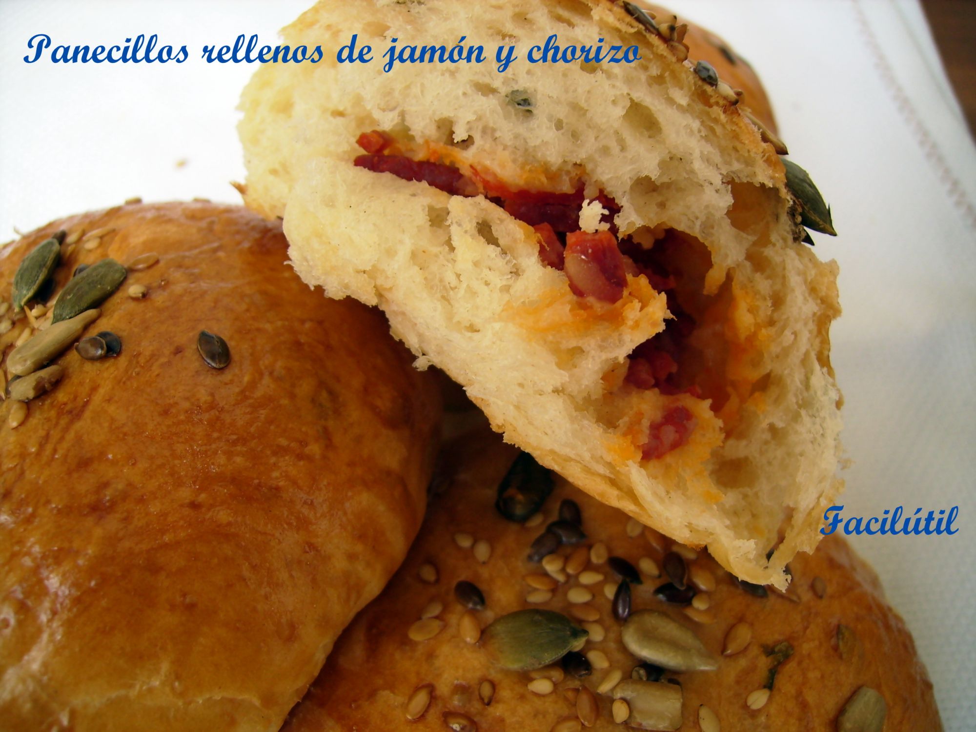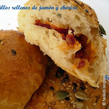 Una vez ha crecido la masa, cogemos porciones, amasamos un poco en la encimera con un poco de harina para quitar el aire, rellenamos de jamón y otros de chorizo, damos forma de bollo y colocamos en una bandeja de horno, tapamos con un paño y dejamos otra vez que dobles su tamaño.