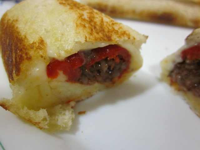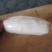 Doramos en una sarten, haciendolo rodar,y cortamos en rodajas.