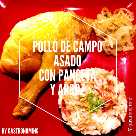 Pollo de campo asado con panceta y arroz