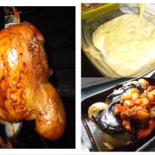 Claro esta que este método se puede aplicar para otras aves o carnes, lo crujiente de la piel y el color del “bronceado” del pollo, te hará creer que el condenado, viene recientemente de unas vacaciones. La diferencia de sabor de un pollo común o un pollo de estos es considerable, pero si no hay otra opción ni modo!, otra buena opción es cubrir el ave con finas lonchas de papada de cerdo ibérico, esta aporta ingentes cantidades de sabor a la pieza.