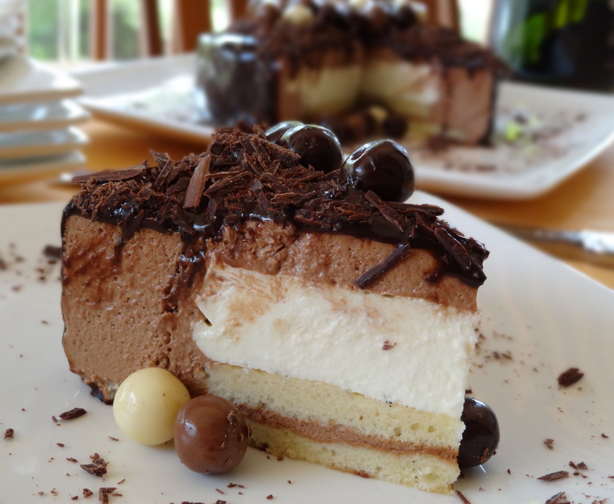 Poner el bizcocho pequeño en el centro y encima la pannacotta congelada. Rellenar con el rseto de la mousse. Congelar una noche.