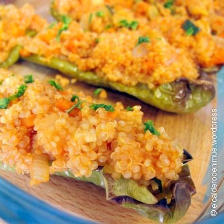 Pimientos verdes rellenos de quinoa con verduritas