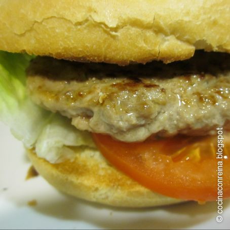 Ponemos sobre panecillo y acompañamos de lechuga y tomate natural.