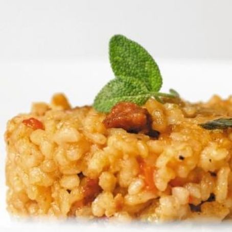 Agrega el chorizo y el arroz y mezcle 1 minuto, 120º, velocidad 2.