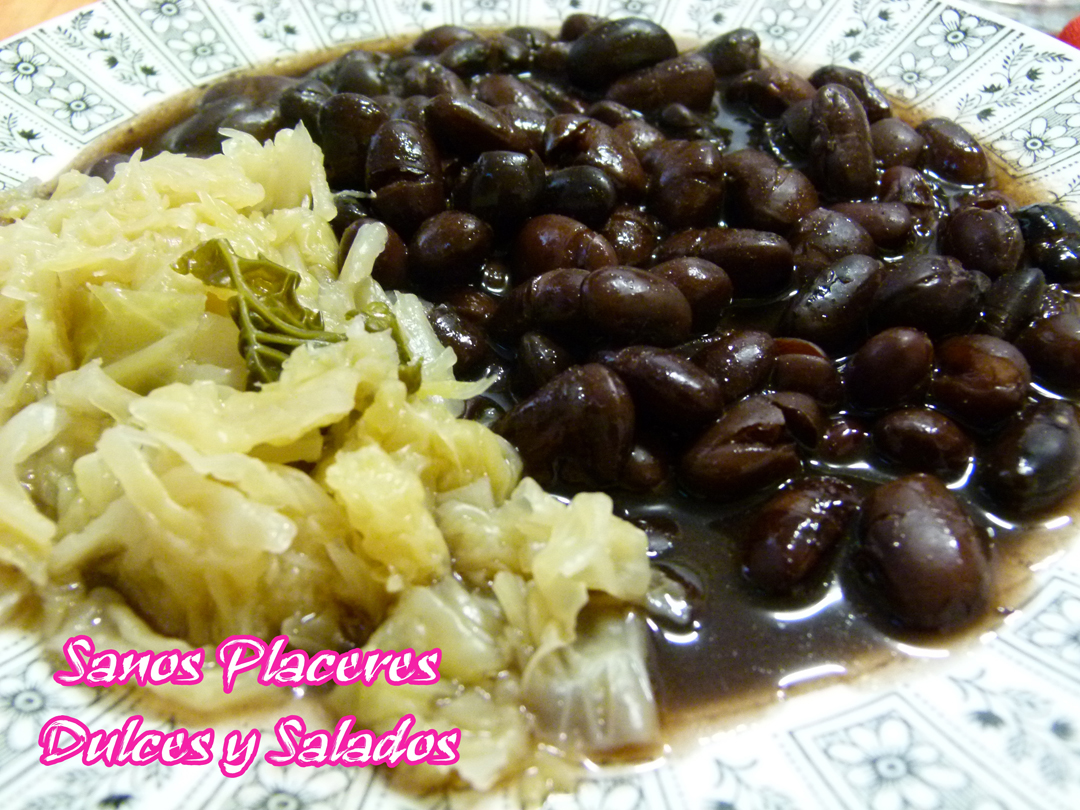 Un vez que tengamos todo listo, servimos las alubiar en un plato y la col la dejamos en el centro de la mesa para que cada comensal se sirva a su gusto. También se puede acompañar las alubias con morcilla si os gusta.