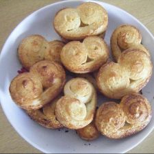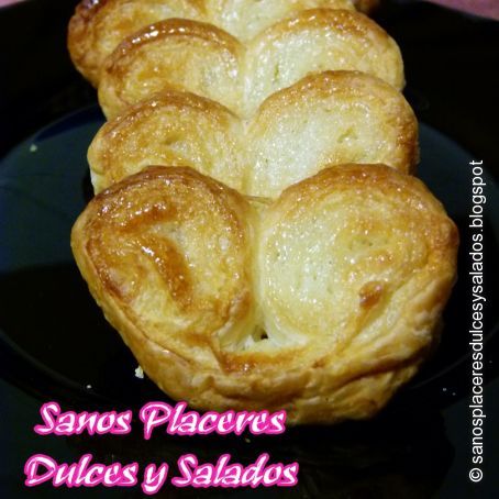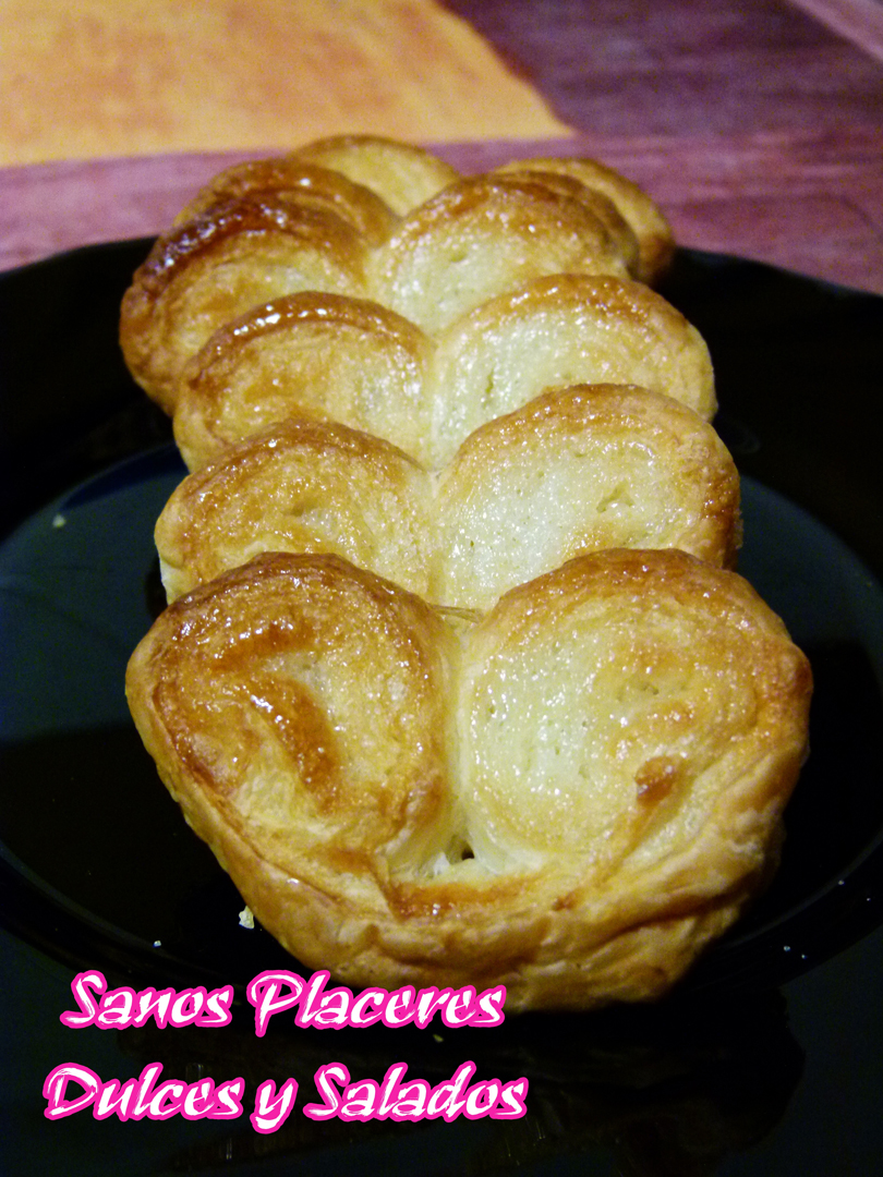 Precalentamos el horno a 200ºC y metemos las palmeritas con calor arriba y abajo (sin aire), hasta que se doren.