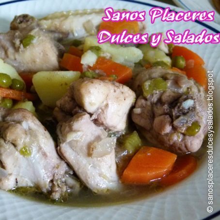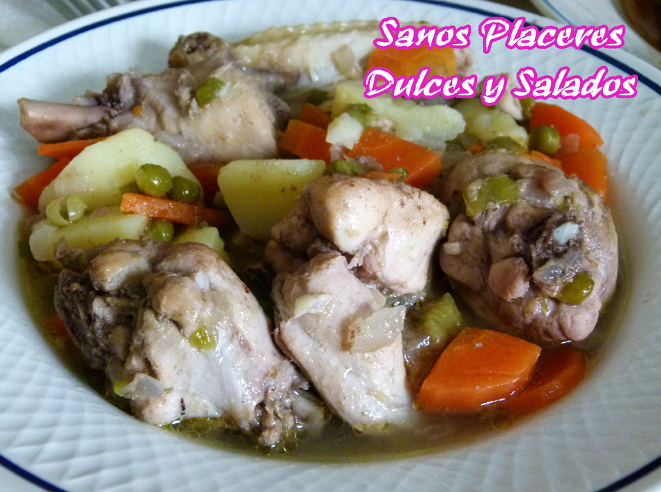 Sabremos si esta echo cuando el pollo se suelte del tenedor sin problemas (sin que se desmenuce). También comprobaremos que la patata y la zanahoria no están duras (sino, dejamos unos minutos más).