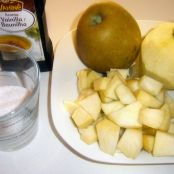 Pelamos nuestras manzanas, les quitamos el corazón y las cortamos en trocitos pequeños.
